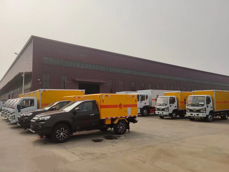 按危貨種類分為:1類爆破車、2類氣體氣瓶車、3類易燃液體運(yùn)輸車、4類易燃固體運(yùn)輸車、5類氧化性物品廂式車、6類毒性和感染性物品廂式車、7類放射性物品廂式車、8類腐蝕性物品廂式車、9類雜項(xiàng)危險(xiǎn)品廂式車、特種翼開(kāi)啟廂式飛翼車和冷藏車等