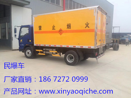 我公司部分危險品運輸車配置:躍進9.4噸防爆車,上戶噸位9.4噸,車廂尺寸6300×2365×1950mm,限速,79,軸數,2,輪胎數6,軸距 4750mm,燃料種類  柴油,配置原廠空調。東風多利卡D6爆破汽車運輸車,原裝助力空調,斷氣剎,全柴90馬力發動機,車廂長3500×1870×1750mm,上戶噸位1495kg藍牌,軸距2600mm,限速80。江鈴順達爆破器材運輸車上戶噸位可選1.5和2.9噸,原裝助力空調,江鈴現款駕駛室一家可翻起,江鈴115馬力發動機,車廂尺寸4250×1850×1730mm,軸距3360,輪胎7.00R16LT子午胎。東風日產皮卡單排座,電動門窗中控鎖,轎車級貨車,四驅動140馬力動功率,適用各種路況,小噸位0.5噸,選裝側門分倉。考慮一千次,不如去做一次;猶豫一萬次,不如實踐一次。華麗的跌倒,勝過無謂的徘徊,邁出第一步,才可以收獲停不住!因為輸不起的人往往也贏不了,要有勇氣,人的一生如果你自己不努力,你這一輩子都有可能在原地踏步。福田奧鈴危貨車,一排半帶小臥駕駛室,原裝助力空調,電動門窗中控,車廂尺寸4700×2000×1800也可選單排座車廂長5米,康明斯156馬力動力,5噸上戶噸位,福田奧鈴這款車是5噸車型中比較經典的一款車,大馬力高配置。一說10噸爆破車,一定繞不開東風天錦,6米1的廂長,康明斯190動力,295/80R22.5真空胎,法規規定一類危險品車不得超過10噸。爆破物品運輸車找湖北新耀就夠了,車型多,品質好,標準即時更新,爆破物品運輸車哪家好?哪家便宜?選來選去還是湖北新耀省心。我廠直供0.2噸-10噸民爆車,備貨慶鈴皮卡,江鈴順達,福田奧鈴,東風多利卡,東風天錦等爆破物品運輸車200多臺,大大的節省了客戶選車,看車,購車的時間。