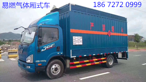 安全達(dá)標(biāo)易燃?xì)怏w廂式運輸車 車型二:解放牌易燃?xì)怏w廂式運輸車