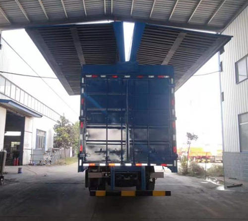 飛翼類型:左右兩側雙飛翼液壓開起式車廂(翼門開起時,可左右飛翼門獨立進行開起,互不干涉影響);