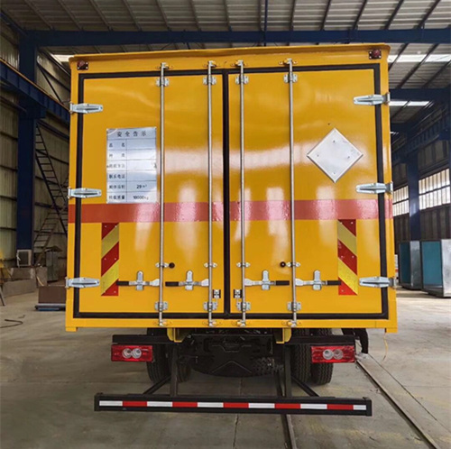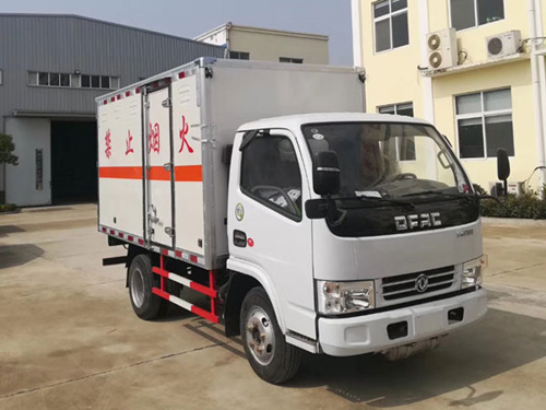 危險品運輸車是一種貨廂頂部不封閉,排氣管前置并裝有防火花裝置,運送石油化工品、炸藥、鞭炮等危險品的專用車輛。