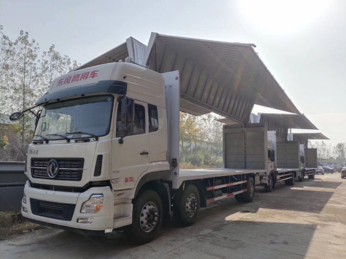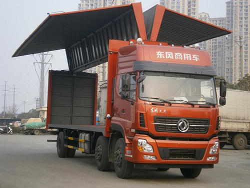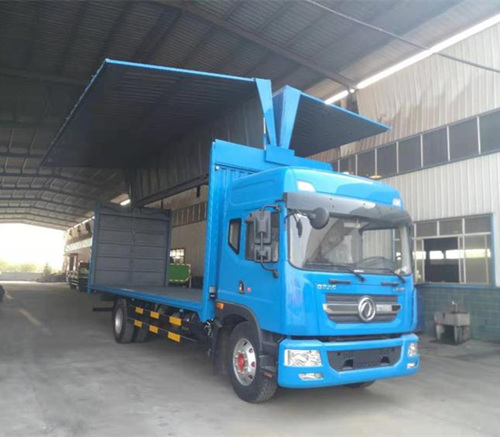 11.東風(fēng)多利卡9.8米翼開(kāi)啟廂式飛翼車(額定質(zhì)量8.5噸,大型翼展車)