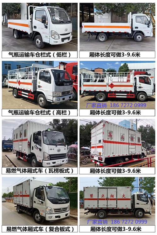 2類氣瓶運輸車分廂式氣瓶運輸車和欄板氣瓶運輸車兩款。