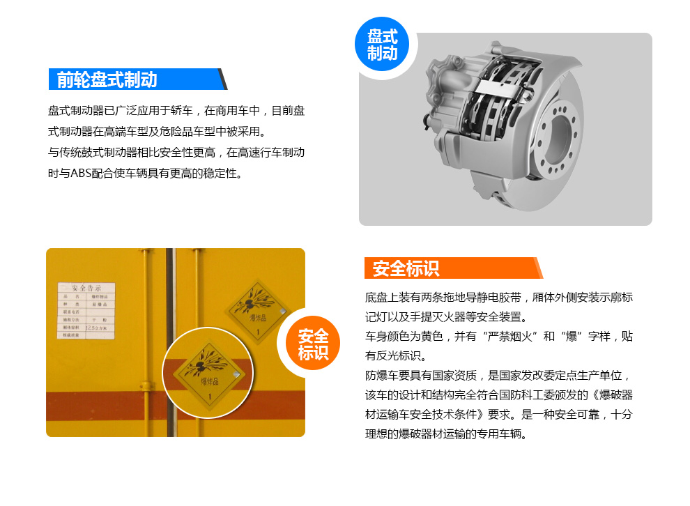 配置:僅選用裝配子午胎和前盤制動器和ABS的底盤,ABS系統;裝配限速裝置,限制最高車速不得超過80km/h,安裝符合規定的具有衛星定位功能的行駛記錄儀,排氣管前置